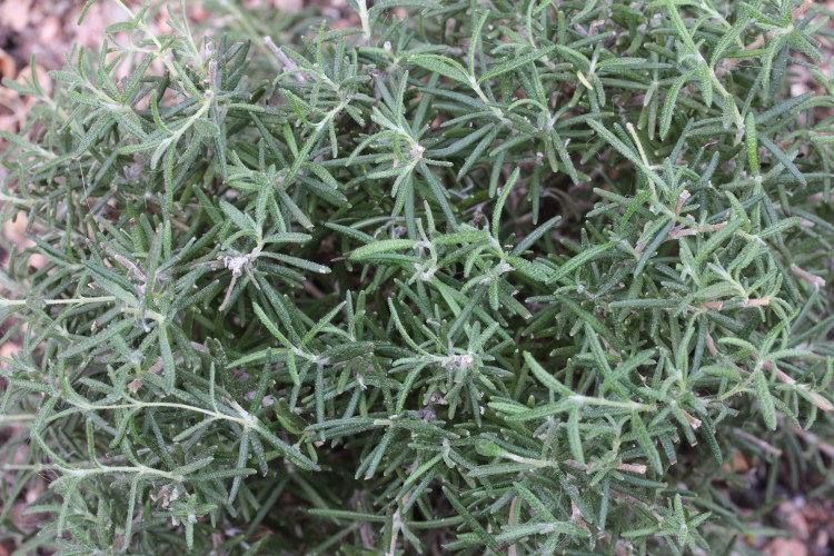 Rosemarinus is an evergreen shrub in the mint family, cultivated worldwide for its aromatic leaves. It can vary in size and shape depending on the variety. Some cultivars appear as small bushes, while others trail over low walls. Look for ash colored scaly bark on the numerous lengthy branches. The leaves are 1 inch long and very narrow, leathery, dark green on top, and downy white underneath. You will notice a prominent central vein and margins with rolled down edges. The plant produces lots of small delicate two lipped, blue flowers at its tips. Rosemary likes dry sandy soil, lots of sun and a warm/temperate climate. It will tolerate the the drought of the dessert better than cold, snowy winter.