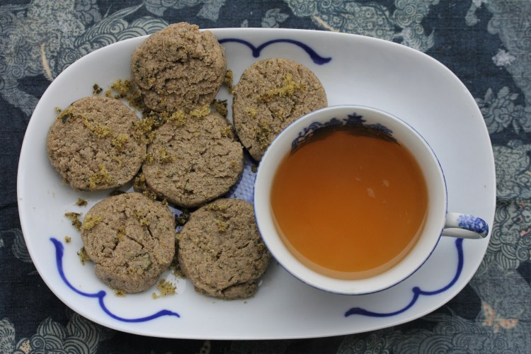 There is no end to the herbs that can be added to baked goods. Lavender, thyme, calendula, chamomile-just to name a few. I even saw a gorgeous emerald green cake made from nettles. We had two feet of unexpected snow and I needed a project to keep the girls busy. I remembered seeing a very appealing recipe in one of my books for cookies made with basil. I happened to have some fresh basil from the grocery store and some leftover basil sugar. Basil sugar is made by mixing granulated sugar and a small amount of fresh basil in a food processor. It stores for months and is really good on ice cream . You can also make violet or lavender sugar the same way. The following recipe is so kid friendly that they can do most of it themselves until the cookies need to go into the oven. I also think the surprise factor is fun as we typically associate basil with things like pasta or pizza. We liked this treat quickly dipped in hot milk or tea on a cold day.