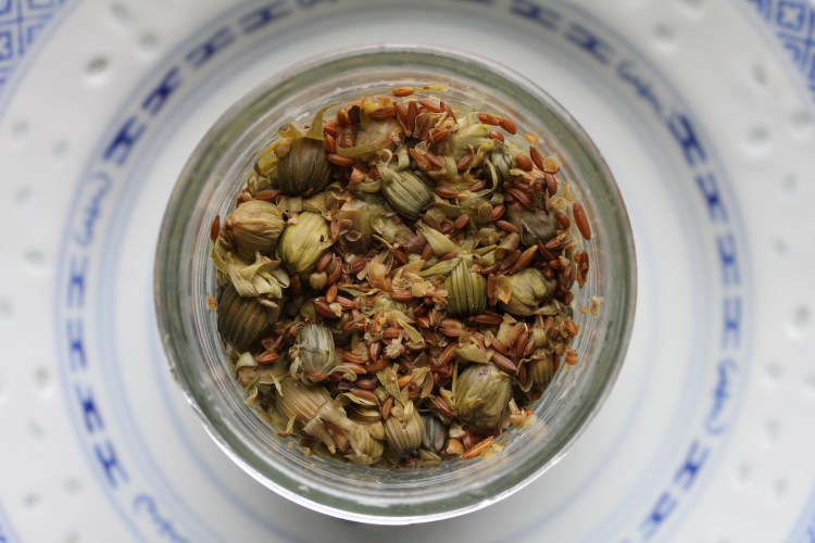 Top your jar of buds with a pinch of caraway, ground coriander, and dried oregano or thyme. You could add chopped garlic or onions if you wish.