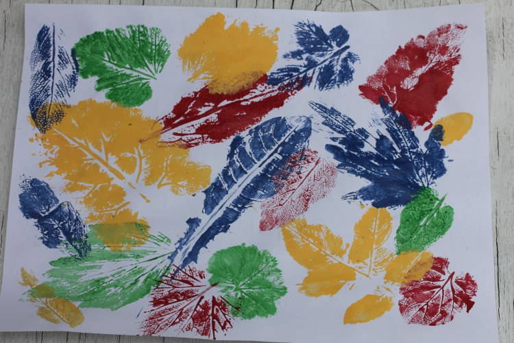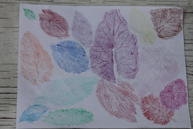 Herb Stampings– start by painting the backside of a leaf with acrylic paint. Turn it over and press it onto the paper like a stamp. Lift carefully and enjoy the results. You can also do this activity on textiles if you do not plan on washing them often.