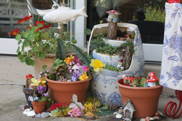 Fairy Houses-are very popular at my house even though my kids have grown so much. My girls like to act out scenes with fairies healing each other creatures with herbs. . If you are familiar with the series Warriors by Erin Hunter you will understand the world and importance of medicine cats. We have a whole set up of tiny cats, dens, etc. in my house that gets hours of use. Artificial flowers, real plants, shells, glass stones, pods/pinecones/bark, clay pots, toy fairies, and all manner of resin houses/doors/decor to be arranged over and over.