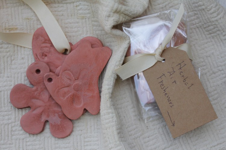 Herbal Air Fresheners-homemade clay tiles soaked in essential oils.
