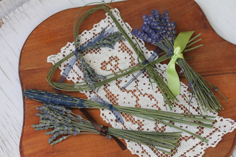 Lavender wands, hearts, and bundles-there are lots of tutorials on-line for making lavender wands. I love making herb bundles with my girls. We dry them in the dehydrator to preserve their lovely colors and attach them to care packages.