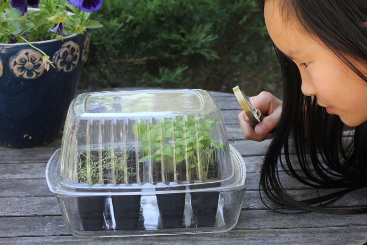 Kids of all ages appreciate having their own garden. Mini greenhouses for starting seeds are easily made from takeout food containers.