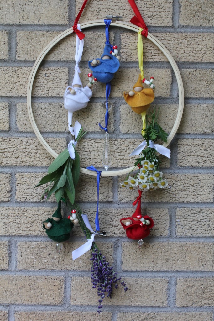 Herb fairies-made by stamping leaves onto paper (yes my 12 year old daughter drew the faces and feet)