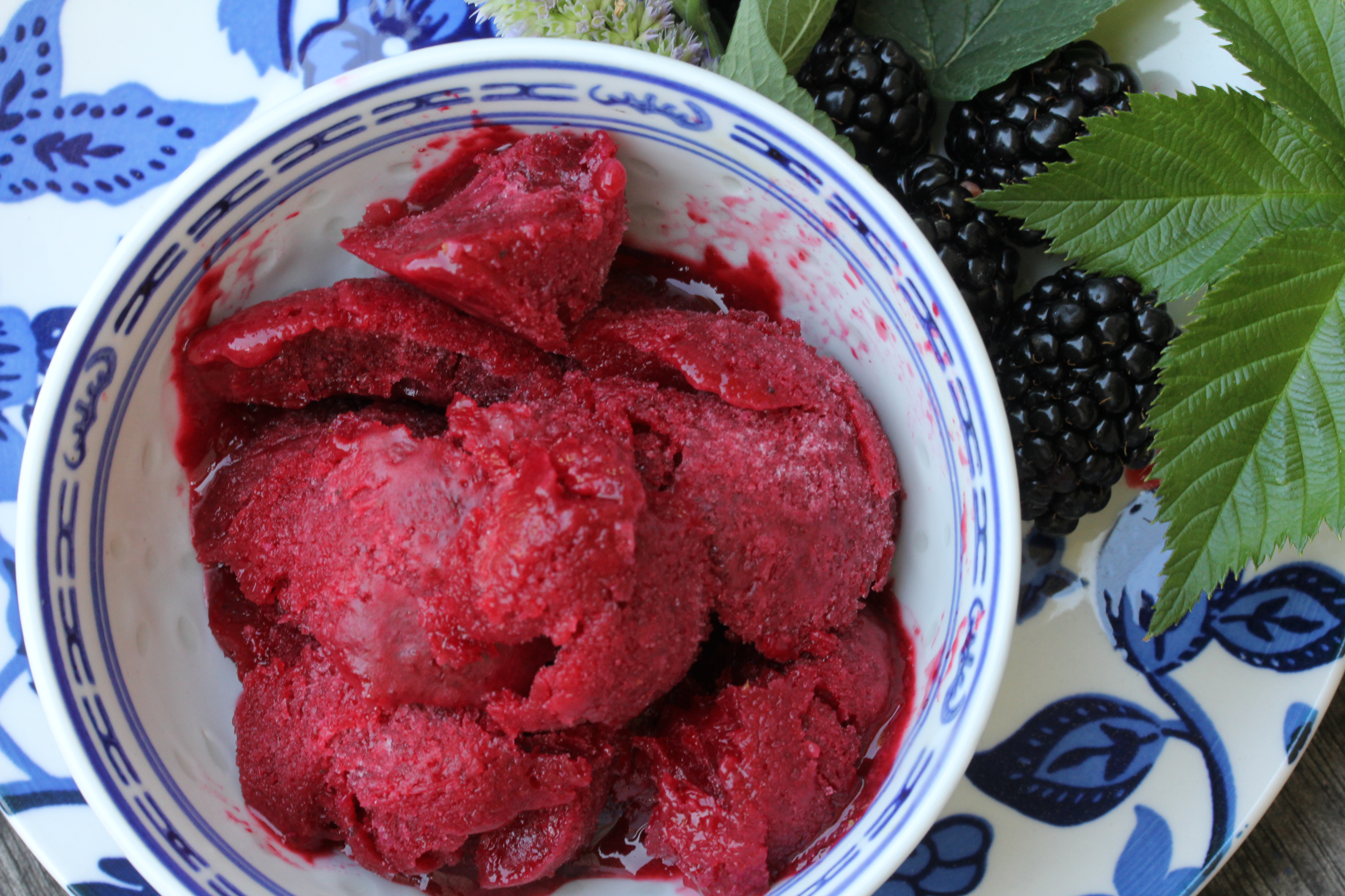 If you don’t have an ice cream maker this hyssop and blackberry sorbet is fun and easy to make with kids.