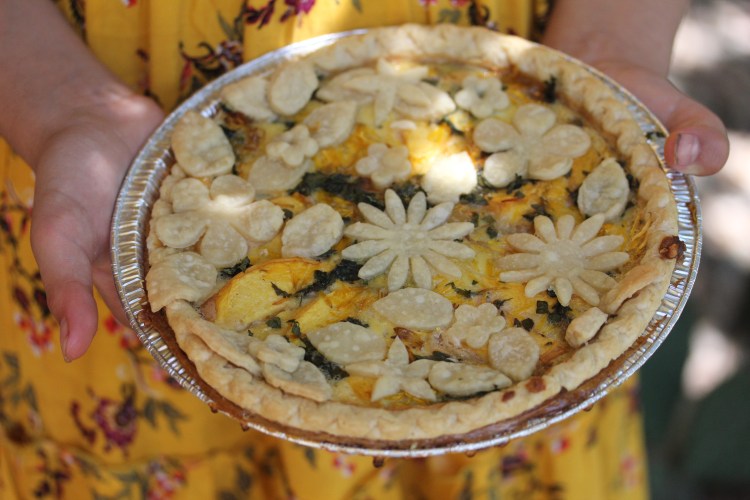 If you wish to decorate the top of your pie with the second pie crust, use cookie cutters or fondant “stamps” to create shapes. This works best if the dough is chilled and very solid. 15 minutes into your bake place your cutouts on top of the custard. You can increase your bake time if necessary to get your top golden brown