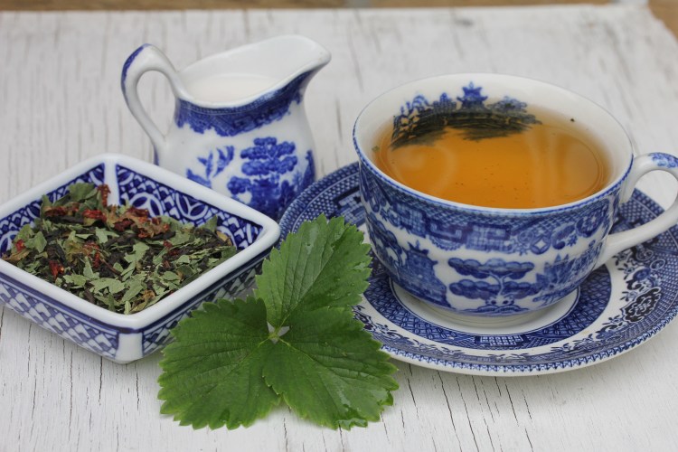 Did you know that colonists used strawberry leaves as a substitute for black tea? Strawberry leaves can become toxic while in the process of decaying and drying. To be safe only consume when fresh or when fully dry and crisp. Less of the chemical (hydrogen cyanide) is also present in the spring and summer. Avoid leaves that are discolored, decomposing, or moldy. The leaves alone have a lovely mild flavor. Add in the tops of the fruit and some black tea and you have a great hot beverage served with a bit of milk.