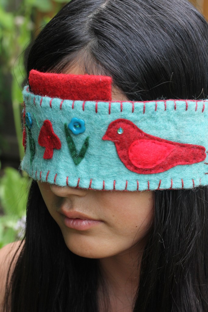A fun and fancy compress or poultice band makes having a headache or injury a bit more endurable. I stitched one up one night while watching a movie. I soak red flannel in herbal oils or infusion then apply to the affected area. The band has an adjustable elastic strip to provide a tight fit on any body part and prevents the contents from slipping.