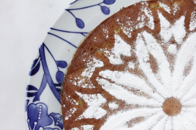 Grease, flour (or use parchment paper) a larger springform cake pan. You can use any cake pan but since this is a dense moist cake I do not recommend a loaf pan.