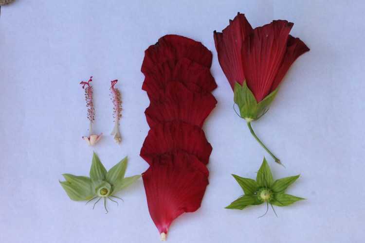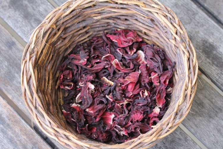 Historically roselle has been used to treat high blood pressure, diarrhea, constipation, inflammation, parasites, bleeding, respiratory congestion, heart disease, menstrual problems, fever, bladder infection, headaches, high cholesterol, kidney weakness, vitamin C deficiency, and stomach issues. In hispanic cultures it is popular tea during pregnancy due to its high vitamin C content which helps the absorption of iron which prevents anemia and hemorrhaging during childbirth. It is well known for its ability to moisten, clear heat, or eliminate excess fluid from the tissues. Externally it can be used as a wash for eye infections, itchy skin, infected wounds, abscesses and bacterial infection in the vagina. Tea of roselle, made from the calyces, is very tart and refreshing. It is commonly served cold with lots of sugar, ginger, cinnamon and clove. It pairs well mint. The “fruit” can also be used for jam, jelly, juice, wine, and syrup. It needs a lot of sweetener to balance its very sour flavor. The young leaves have been eaten like spinach or put into curries.