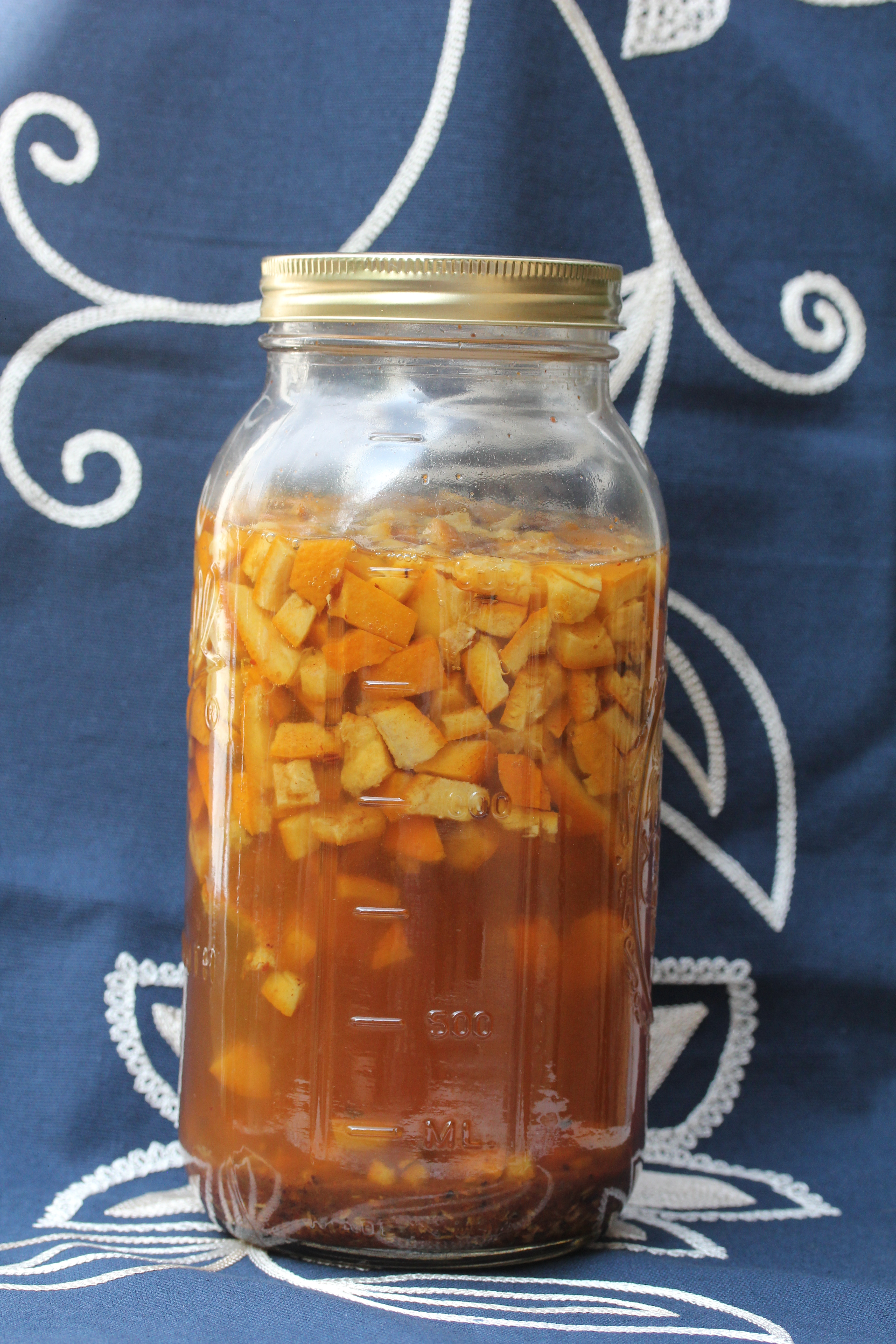 3 cups of fresh orange peel coarsely chopped. Oranges with a thick peel work best.