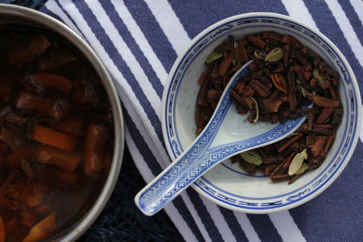 Place all ingredients in a large pot and cover with water. Bring to a boil. Reduce heat and simmer on a very low temperature for 30-60 minutes. Check the water level frequently to prevent scorching/burning. Adding more if necessary.