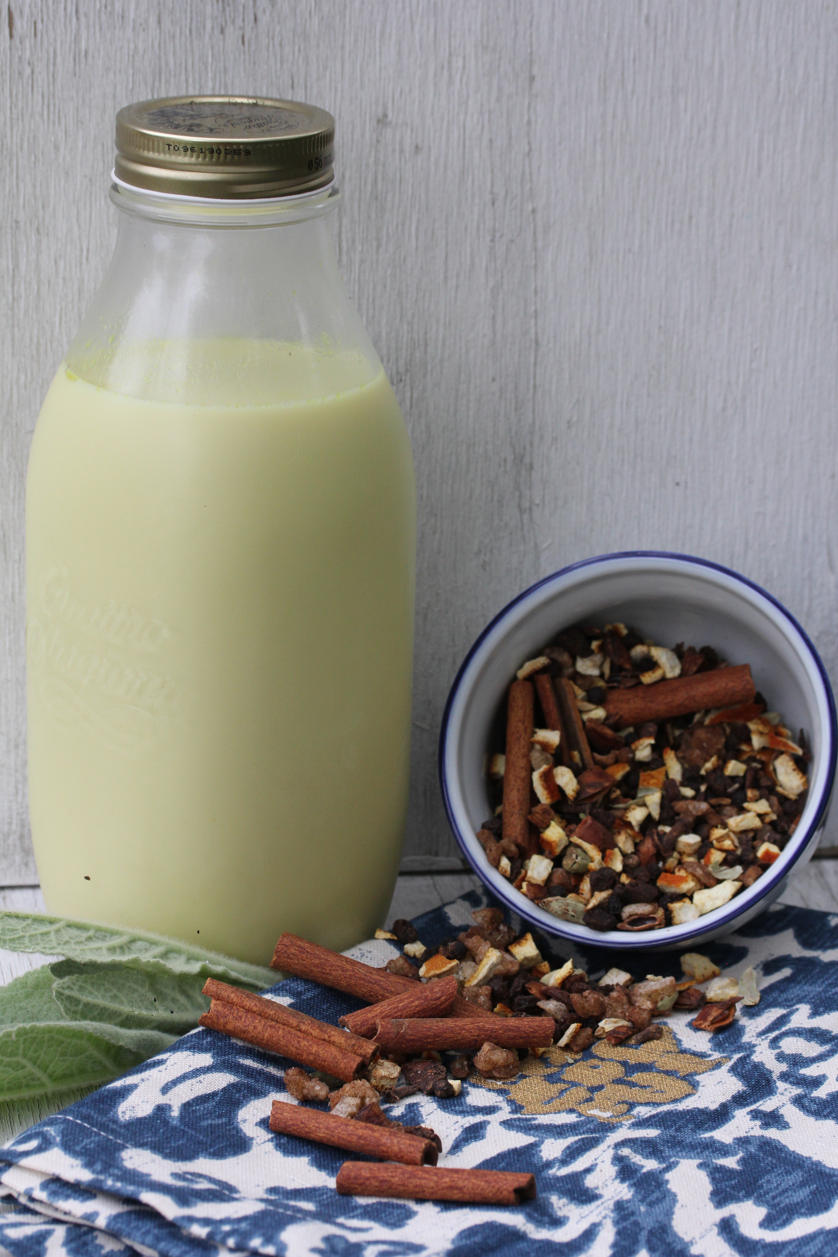 Place 2 cups of water to a large saucepan. Bring to a boil and add your spices and ginger. Simmer tea for 1/2 an hour. Strain and reserve liquid. Add liquid “milk” and sweetener back into your original pan. Heat for 3 minutes. Serve immediately.