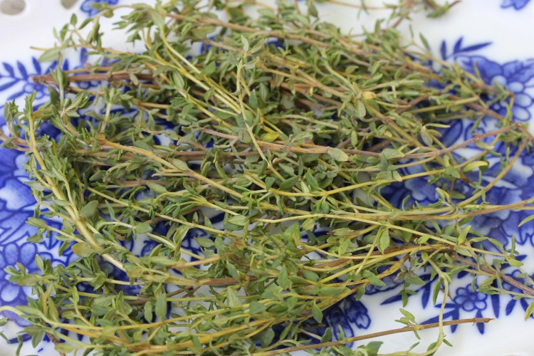 In a food processor grind fine- 1 cup of white sugar, 1 TBSP of fresh thyme leaves, 2 TBSP of dried chamomile flowers, and 5 drops of lemon essential oil (or add 1/4 tsp of lemon zest), 1 tsp of vanilla extract. Add in….