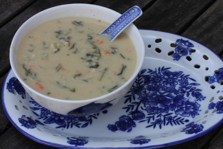 This is one of my favorite cold weather soups. I love the creamy texture and the nutty richness lent by the addition of tahini. It feels nutritionally dense with the right combinations of fat, protein, chewy grains, greens, and vegetables.