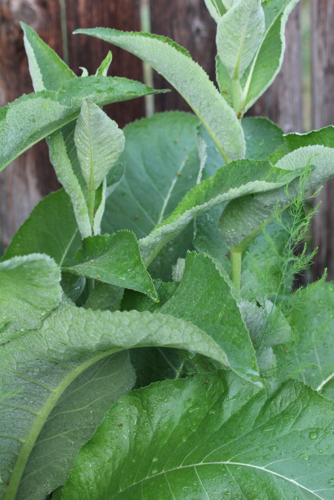 Elecampane is a perennial in the composite/daisy family. It favors cultivated gardens ,meadows, fields, roads and wastelands. Sometimes it is found in the wild. It has a fibrous, beet shaped, root that is brown externally and white internally. This plant can grow 3-6 feet high. The round, thick, stem is rough and wooly to touch. Leaves are very large, spade like and medium green. The underside is paler with distinct vein pattern. True to doctrine of signatures you will be reminded of a the inside of a single human lung. Upper leaves will clasp the stalk, the lower ones grow as stalks from the ground. In spring they form a dense cluster of shoots, dying back come fall. Leaf margins may be wavy or have some serration. Single yellow flowers tend to grow at the end of longs stems. They resemble large dandelions. The seed head is a brown, quadrangular achene. Harvest rootstock in its second year.