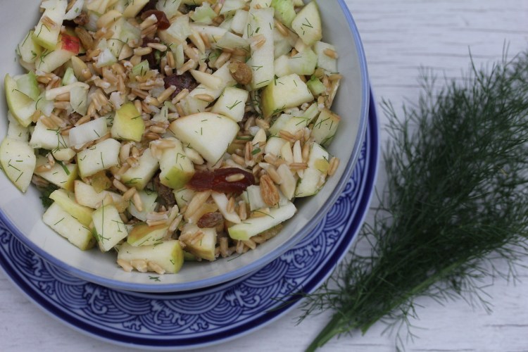 This salad is so versatile. Perfect for a summer picnic or potluck as it transports well. Add a bit of yogurt and you have a yummy breakfast or side dish for brunch. I love that it uses both the bulb/stalk and the leaves. I have a bumper crop fennel this year. It is finally established enough to be a perennial that overwinters and becomes one of the biggest herbs in the garden. Fennel is an under appreciated plant. Even the seeds and pollen are eaten. The bulb can be used raw like celery or cooked like a root vegetable. Roasted, grilled, or charred-So many ways to explore when preparing it to influence its taste and texture. The added benefit of it supporting digestion and easing any stomach complaints. I use it a lot in preparations for children or for when aging has diminished metabolic fire.