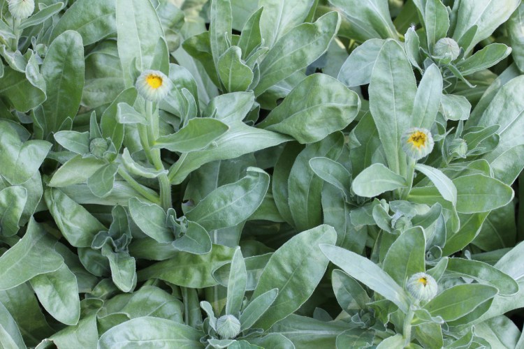 Calendula (pot marigold). Latin name: Calendula officinalis. Family: Aster. This extremely attractive herb has bright yellow/orange medium sized flowers. It has many petaled daisy like ray petals. (single or double) surrounding the darker disk. The entire plant is slightly fuzzy and a lovely shade of jade green. Calendula grows 1-2 feet tall stem that forms many angular branches terminating in a single bud. The leaves are alternate, oval/sword shaped and about 3 inches long. The seeds are very distinctive forming a good sized brown spiney spiral. The blossoms are slightly resinous/sticky and have a certain smell. This easy to grow plant is native to Asia but grows all over the world. It is often a self seeding annual or when the winters are mild, a perennial. It prefers a garden location or area that is open and very sunny. Because it produces so many seeds it can spread and take over very quickly if you do not thin in the spring. Deadheading will give you an overabundance of blooms most of the summer. Calendula will bring a lot of native pollinators into your yard. The flowers are harvested just as they open and work best when they are dried thoroughly soon afterward.
