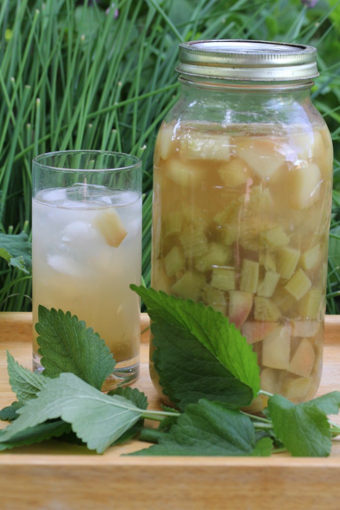 My teens were totally willing to try this once I called it “rhubarb lemonade”. Lots of ice is really essential to the aesthetic experience on a hot summer day. It was a big hit with my family. “Leftover fruit” can be mixed into yogurt, granola, turned into a spread, put in a smoothie etc.