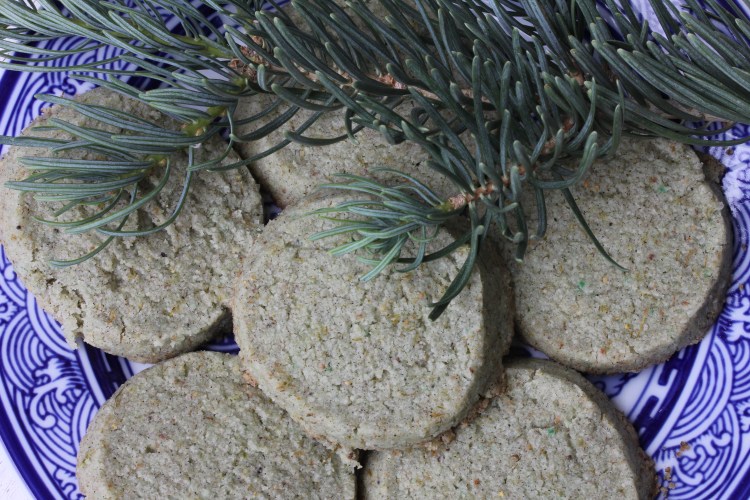 I associate cookies and baking with the holidays. This recipe brings to mind the crisp feel, taste, and smell of a winter forrest. Spruce and fir tips are picked in the spring. You must freeze them if you plan to use them at other times of the year.